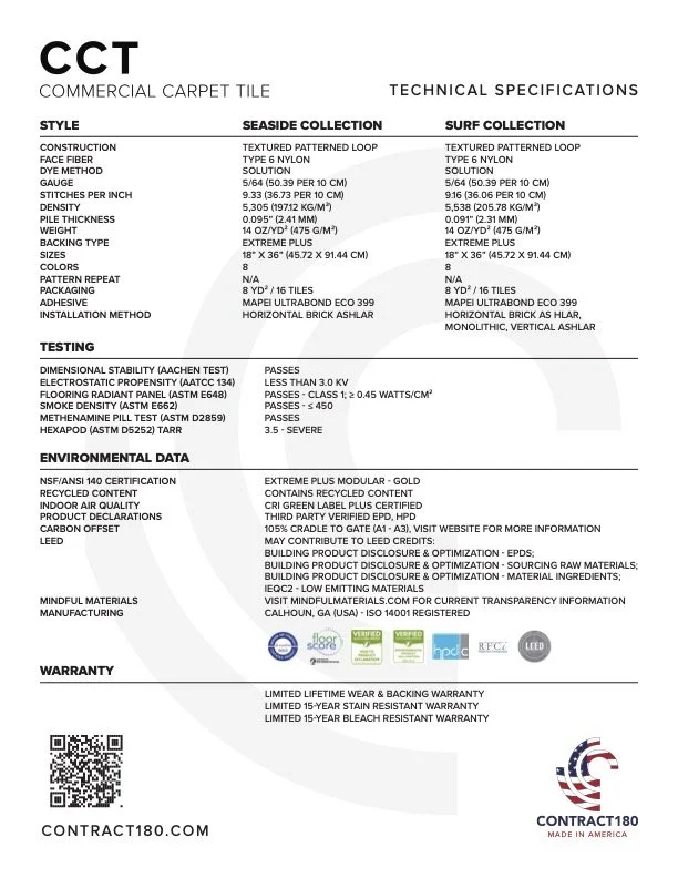 The Seaside & Surf collection brings the organic movement and tranquil textures of the coastline into the modern workspace. This series is designed to break the rigidity of traditional commercial environments, offering a rhythmic, multi-level loop pattern that mimics the ebb and flow of the tide. Seaside & Surf is Made in the USA and precision-engineered to provide a serene aesthetic without compromising on the heavy-duty performance required for high-traffic interiors.